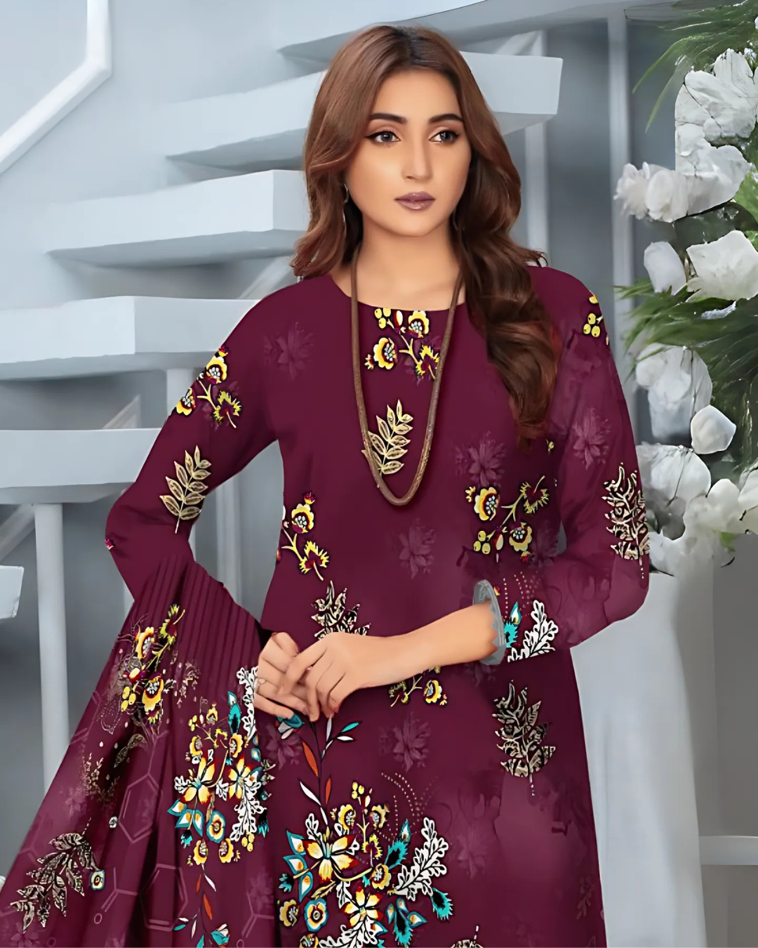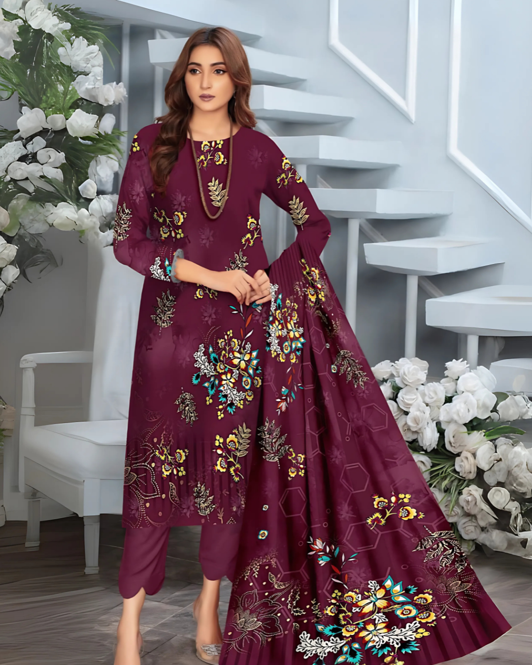 Shirt: Premium Digital Khaddar with elegant floral patterns (2.5 meters)